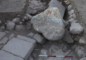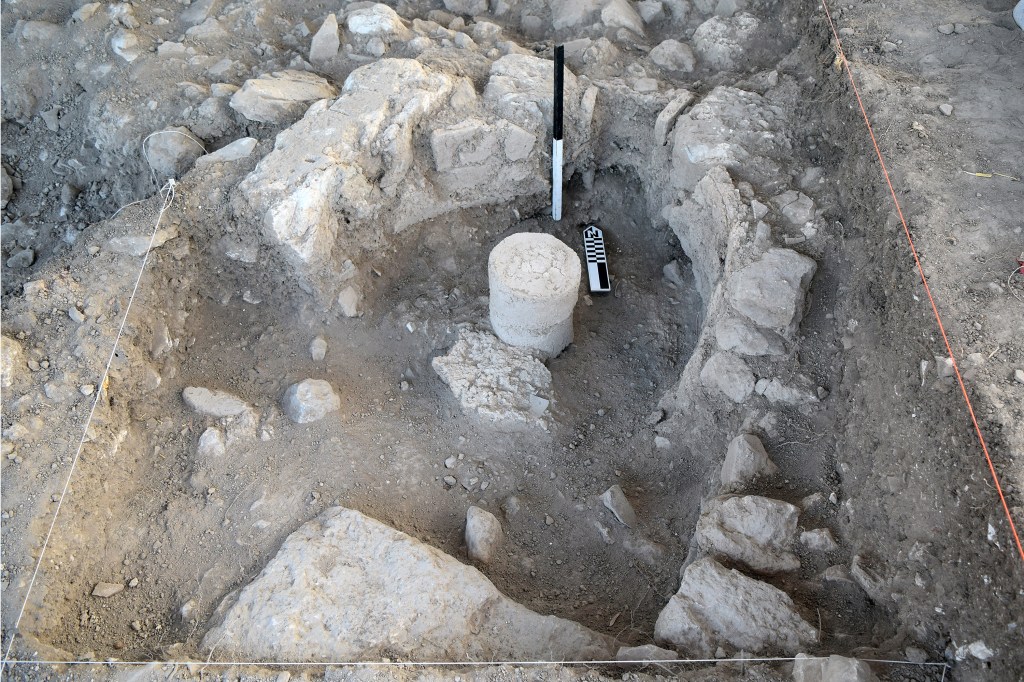 The team dug eight squares in two fields. At the crown of the northern hill the team found remains of a building with plaster floors dating to the second century CE, and the corner of a house that probably dates to the Early Roman period.